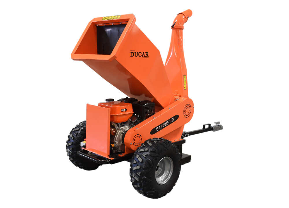 The Heavy Duty DUEB1500E-HD wood chipper is built for serious yard work. Powered by a reliable 15 horsepower, 420 cc engine and equipped with a 2-blade barrel, a counter blade and commercial-grade bearings, it efficiently chips branches up to 5 inches (12 cm) in diameter.